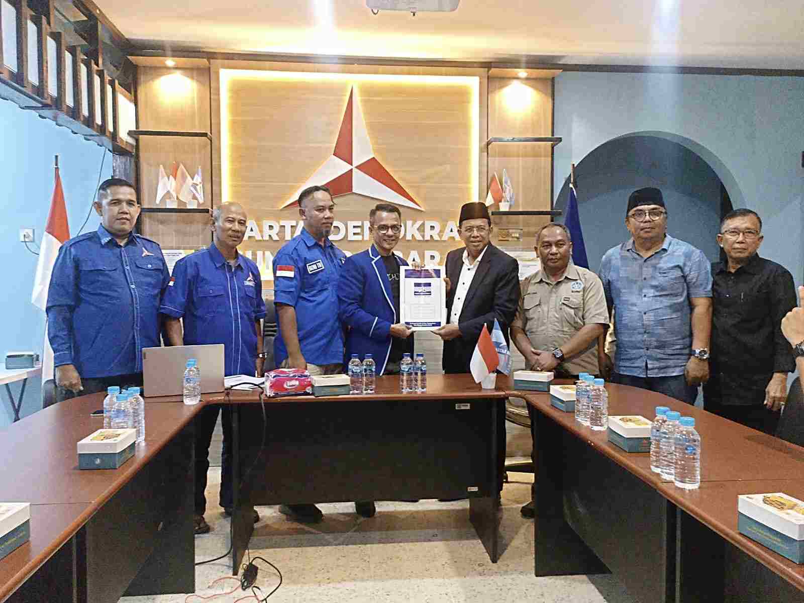 PADANG, HARIANHALUAN.ID – Rektor Universitas Negeri Padang (UNP) Ganefri juga menyerahkan pendaftaran diri ke Kantor Dewan Pimpinan Daerah (DPD) Demokrat Sumbar untuk maju sebagai Bakal Calon Gubernur Sumatera Barat (Sumbar), Minggu (5/5/2024).