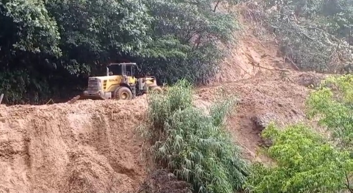 Guna melakukan penanganan tanah longsor, tim gabungan mengerahkan tiga alat berat guna melakukan evakuasi dan pencarian korban hilang serta pembersihan material longsoran yang menutup badan jalan.