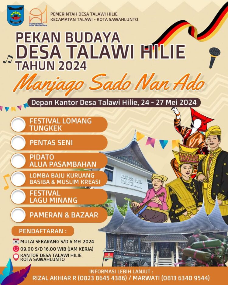 SAWAHLUNTO, HARIANHALUAN.ID – Pemerintah Desa Talawi Hilie, Kecamatan Talawi, Kota Sawahlunto akan menggelar Pekan Kebudayaan pada tanggal 24 – 27 Mei 2024 mendatang yang akan berlangsung di halaman Kantor Kepala Desa setempat.