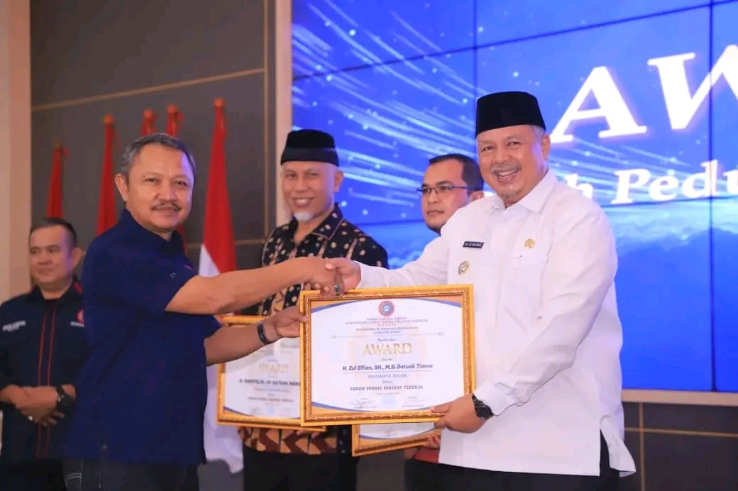 Penghargaan tersebut, diserahkan langsung oleh Ketua Dewan Pimpinan Daerah (DPD) Konfederasi Serikat Pekerja Seluruh Indonesia (KSPSI) Provinsi Sumatera Barat, Arsukman Edi saat memperingati Hari Buruh Internasional (Mayday) Tahun 2024.