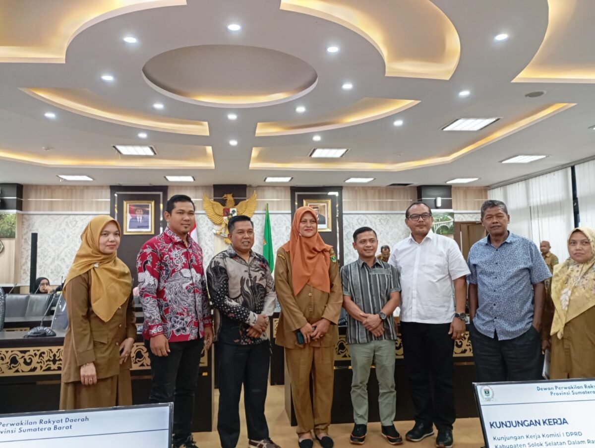 PADANG, HARIANHALUAN.ID – Komisi I DPRD Kabupaten Solok Selatan (Solsel) melakukan kunjungan kerja ke DPRD Sumbar dalam rangka konsultasi pembahasan Rancangan Peraturan Daerah (Ranperda) yang menjadi tugas komisi terkait, Selasa (14/5), di ruang khusus 1.