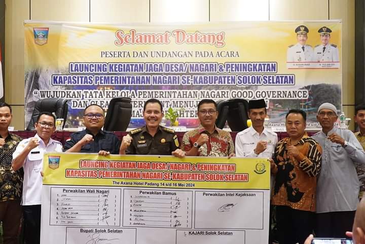SOLOK SELATAN, HARIANHALUAN.ID- Pemerintahan Kabupaten (Pemkab) Solok Selatan, melalui Dinas Sosial PMD Solok Selatan menggelar acara launching kegiatan “Jaga Desa/Nagari dan Peningkatan Kapasitas Pemerintahan Nagari (Pemnag) se-Kabupaten Solok Selatan”.