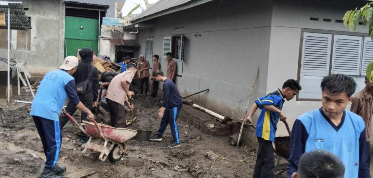 BATU TABA, HARIANHALUAN.ID- Sebagai bentuk kepedulian atas bencana banjir lahar dingin (galodo) di Kabupaten Agam, keluarga besar SMKN 1 Baso menggelar aksi kerja bakti pembersihan lumpur di rumah warga yang terdampak, Kamis (16/05/2024).