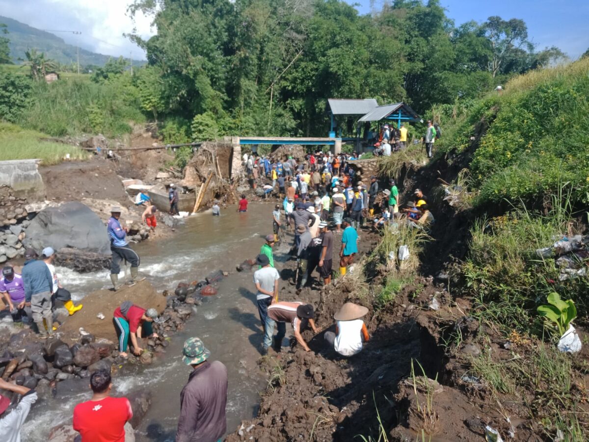 Masyarakat melakukan pembersihan material serta memasang dam di sisi aliran sungai dengan karung bersisi pasir tanah, untuk minimal mengutangi potensi longsoran susulan. (*)