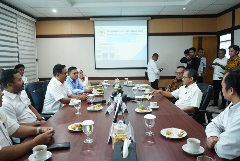 Penyerahan LHP dilakukan di Ruang Rapat Lantai 2 Gedung A Kantor BPK Sumbar, oleh Kepala BPK Sumbar Arif Agus, yang diterima oleh Bupati Solok Selatan H. Khairunas dan Ketua DPRD Solok Selatan Zigo Rolanda, Rabu (8/5/2024).