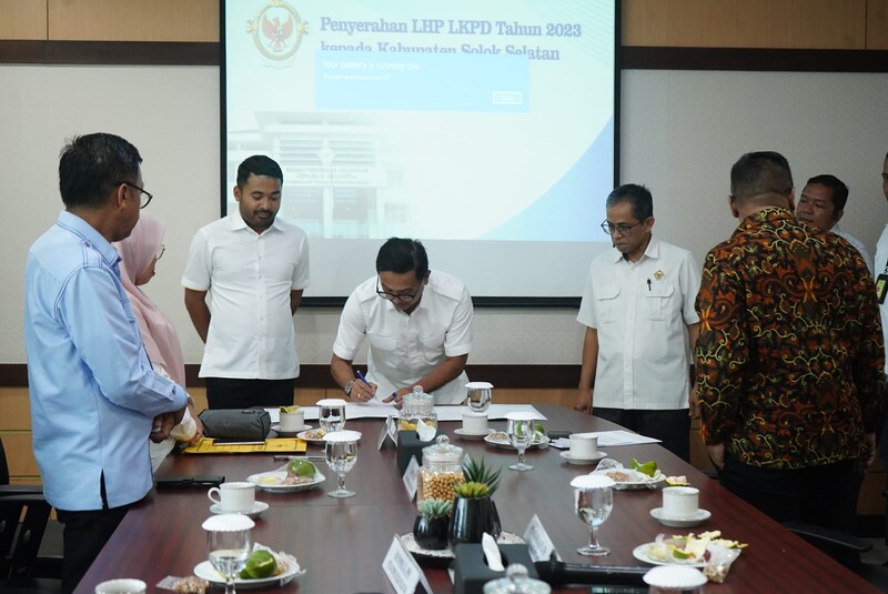 “BPK telah memeriksa Laporan Keuangan Pemerintah Kabupaten Solok Selatan Tahun 2023 dengan opini Wajar Tanpa Pengecualian (WTP) yang dimuat dalam LHP. Pemkab Solok Selatan berhasil mempertahankan opini WTP selama delapan kali berturut-turut sejak tahun 2016,” terang Kepala Perwakilan BPK RI Wilayah Sumbar, Arif Agus saat menyampaikan sambutan.