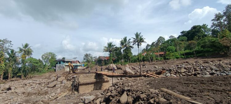 “Ini jembatannya hanyut akibat derasnya air, sehingga bukan hanya jembatan, air juga menghanyutkan musala kecil dan area pemakaman di sekitar jembatan, ” katanya Senin (21/5).