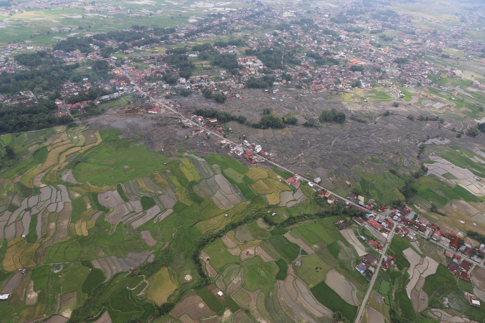 Foto udara wilayah persawahan terdampak galodo di Kecamatan Canduang dan Kecamatan Ampek Angkek, Kabupaten Agam. IST