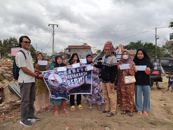 “Atas dasar itu, maka donasi dari Kabeye Yogyakarta kita berikan dalam bentuk uang tunai, dan ini ternyata mendapat respon yang sangat positif dari beberapa masyarakat yang menerima,” ucapnya.