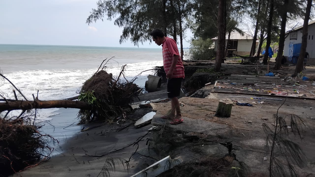 “Waktu ombak mulai naik, kami sedang sarapan. Rencananya habis sarapan mau angkat barang, eh tahunya ombak makin besar. Dicek ke belakang, dapur sudah runtuh,” kata warga tepi pantai, Nurhayati (49) pada Rabu (29/5).