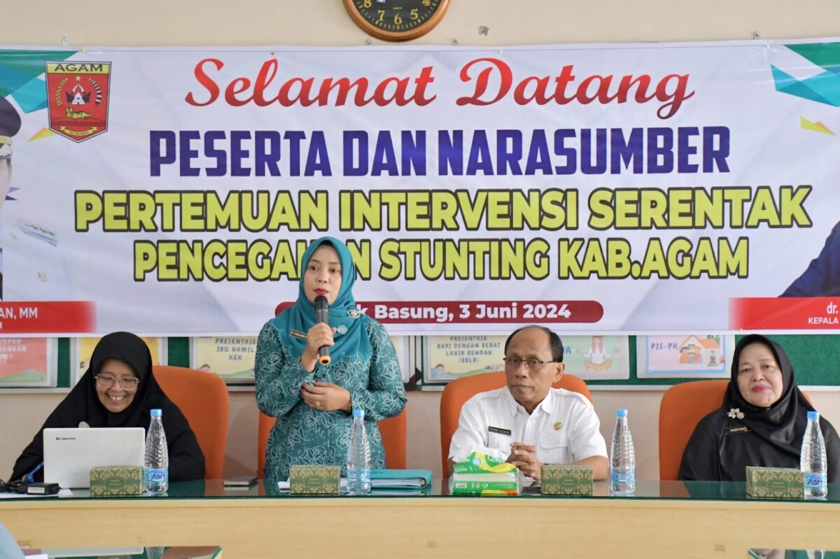 AGAM, HARIANHALUAN.ID — Ketua TP PKK Kabupaten Agam, Yenni membuka secara resmi pertemuan intervensi serentak pencegahan stunting di Aula Puskesmas Lubuk Basung, Senin (3/6).