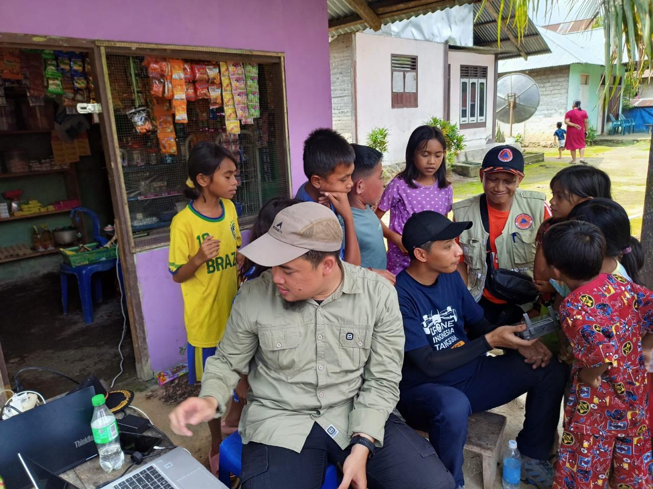 Hasil pemetaan sementara itu dicetak dengan ukuran yang besar dan dipasang di pos pengungsian agar masyarakat dapat melihat dengan jelas bagaimana kondisi geografis dan topografi di wilayah permukiman mereka. Selain itu, tim juga membagikan informasi melalui perangkat komputer jinjing untuk menunjukan di mana wilayah permukiman mereka, apa saja potensi risiko bencananya dan bagaimana langkah mitigasi serta antisipasinya.
