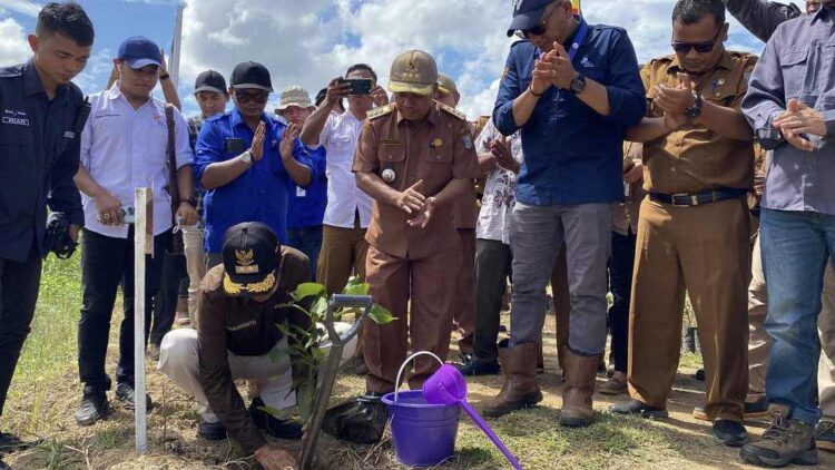 PASBAR, HARIANHALUAN.ID- PT Bakrie Pasaman Plantations bersama Wakil Bupati Kabupaten Pasaman Barat Risnawanto melakukan penanaman 150 pohon di Selasa (11/6) di Air Balam, Kecamatan Koto Balingka.