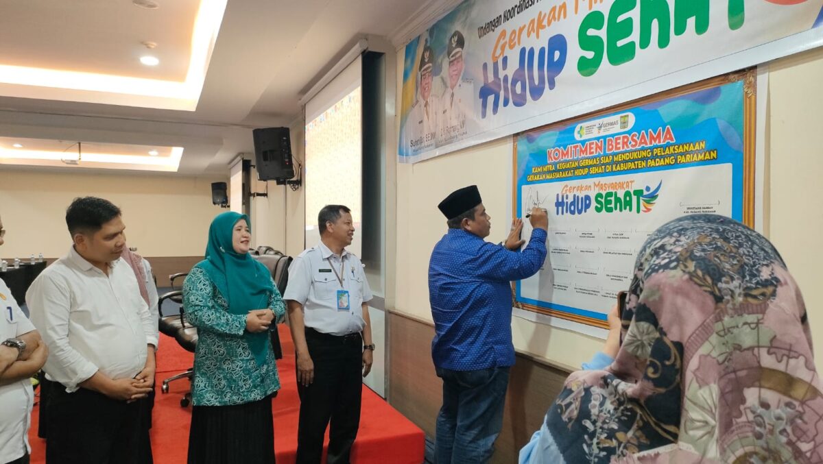 Acara ini dihadiri oleh seluruh Kepala Perangkat Daerah di lingkungan Pemerintah Kabupaten Padang Pariaman, Ketua TP-PKK, dan dilanjutkan dengan penandatanganan komitmen bersama tentang kesiapan mendukung pelaksanaan gerakan masyarakat hidup sehat di Kabupaten Padang Pariaman. (*)