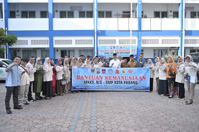 Penyaluran bantuan tersebut juga terselenggara berkat kerja sama MKKS N/S SMP Kota Padang dengan dengan Lantamal II Padang dan Universitas Ekasakti Padang.