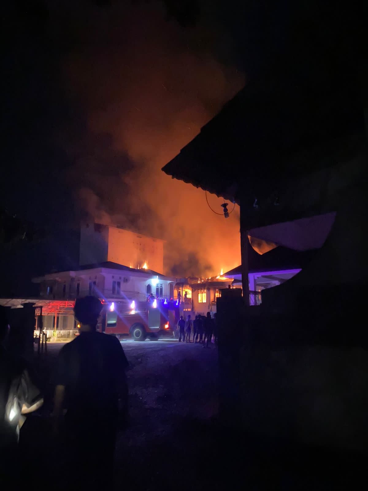 Rumah permanen berlantai dua tersebut habis terbakar. Tiga unit mobil pemadam kebakaran diturunkan, namun besarnya api tidak dapat dilawan.