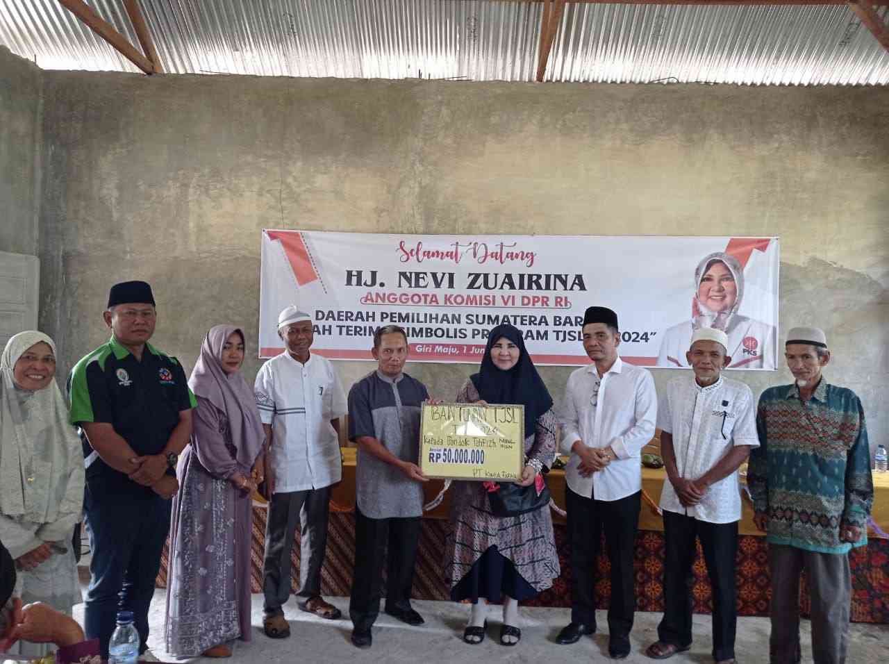 PASBAR, HARIANHALUAN.ID— Anggota DPR RI Komisi VI dari Fraksi PKS, Nevi Zuairina, melakukan serah terima simbolis Tanggung Jawab Sosial dan Lingkungan (TJSL) dari PT Kimia Farma kepada Pondok Tahfiz Nurul Iman di Giri Maju, Kecamatan Luhak Nan Duo, Kabupaten Pasaman Barat.
