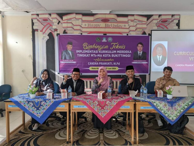 Hal tersebut disampaikan Plt. Kepala Kantor Kementerian Agama Kota Bukittinggi Tri Andriani Djusair didampingi Plt. Kasi Pendidikan Madrasah Amar Albar Antoni ketika membuka kegiatan bimbingan teknis Implementasi Kurikulum Merdeka MTs-MA swasta se-Kota Bukittinggi, pekan lalu.