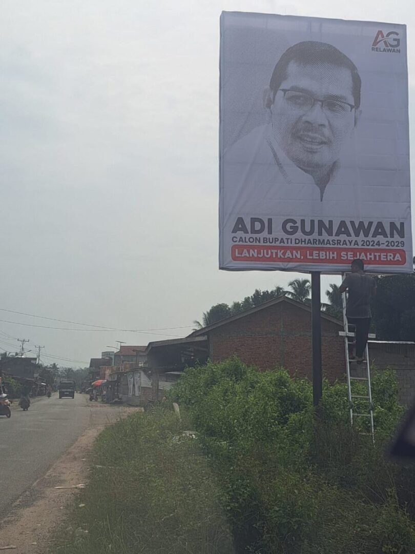 Teks Foto: Salah satu baliho Bakal Calon Bupati Dharmasraya yang sudah terpampang.maryadi