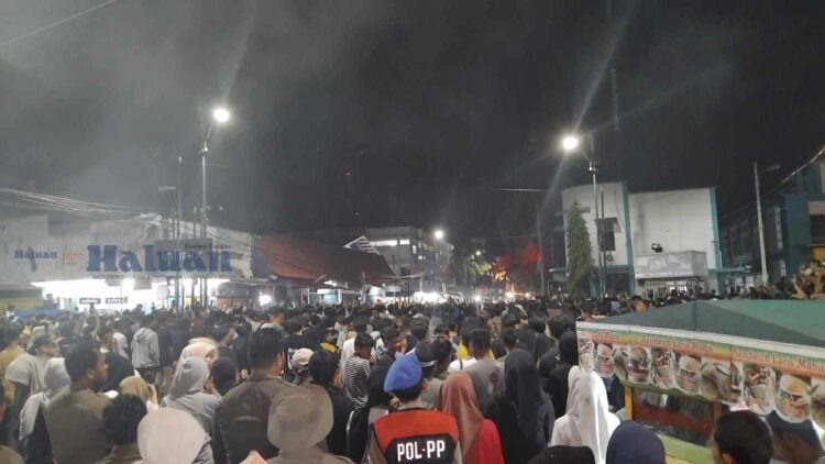 PARIAMAN, HARIANHALUAN.ID – Prosesi Maarak Jari-Jari dalam Pesona Budaya Tabuik 2024 diakhiri oleh salisiah Tabuik antara rombongan Tabuik Pasa dan Subarang di simpang empat Tugu Tabuik, Minggu (14/7/2024) malam.