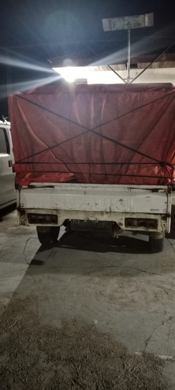 Ket foto: Satu unit Mobil Suzuki Carry pickup dugaan membawa BBM jenis pertalite diamankan pihak Ditreskrimsus Polda Sumbar, di Mako Polsek Pulau Punjung, Kabupaten Dharmasraya. BADRI.