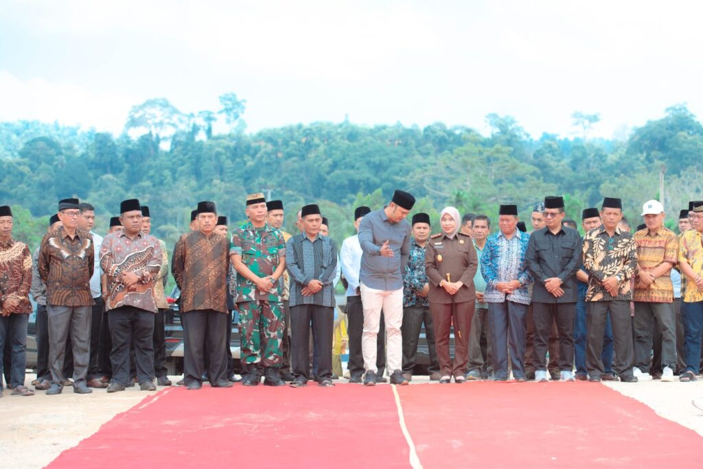 SIJUNJUNG, HARIANHALUAN.ID — Bupati Sijunjung Benny Dwifa Yuswir SSTP,M.Si melakukan peletakan batu pertama (groundbreaking) pembangunan Masjid Agung Baitussalam Nagari Muaro Takung, Kecamatan Kamang Baru, Sabtu (20/7). Keberadaan masjid nantinya diharapkan dapat meningkatkan nilai keagamaan dalam melakukan ibadah di tengah masyarakat.