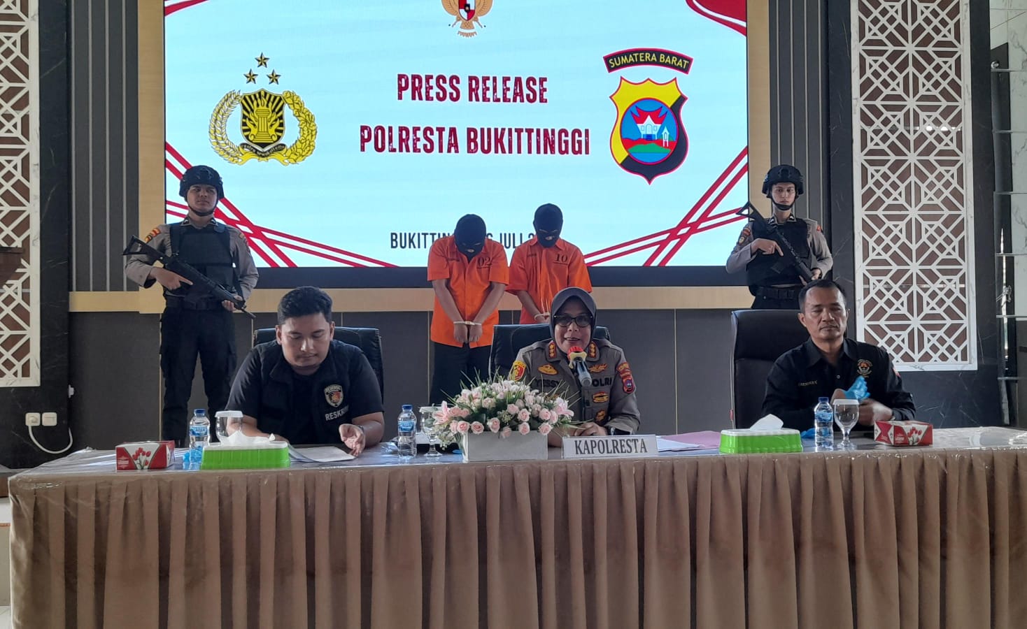 “Modus pelaku adalah meminta pijit, kemudian meraba raba korban hingga menyetubuhui atau mensodomi korban di asrama pesantren. Jika korban menolak, maka pelaku mengancam korban tidak akan menaikkan kelas,” ujar Yessi didampinggi Kasat Reskrim dan Kasi Humas Polresta Bukittinggi.