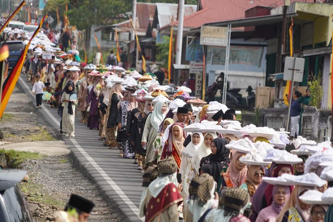TANAH DATAR, HARIANHALUAN.ID- Kalender Satu Nagari Satu Event, Nagari Tapi Selo Bolek Godang, 1000 lopek kucuik sonok diarak ibu-ibu atau para bundo kanduang disepanjang jalan menuju tenda utama didepan kantor Wali Nagari Tapi Selo, Sabtu siang (27/07/2024).