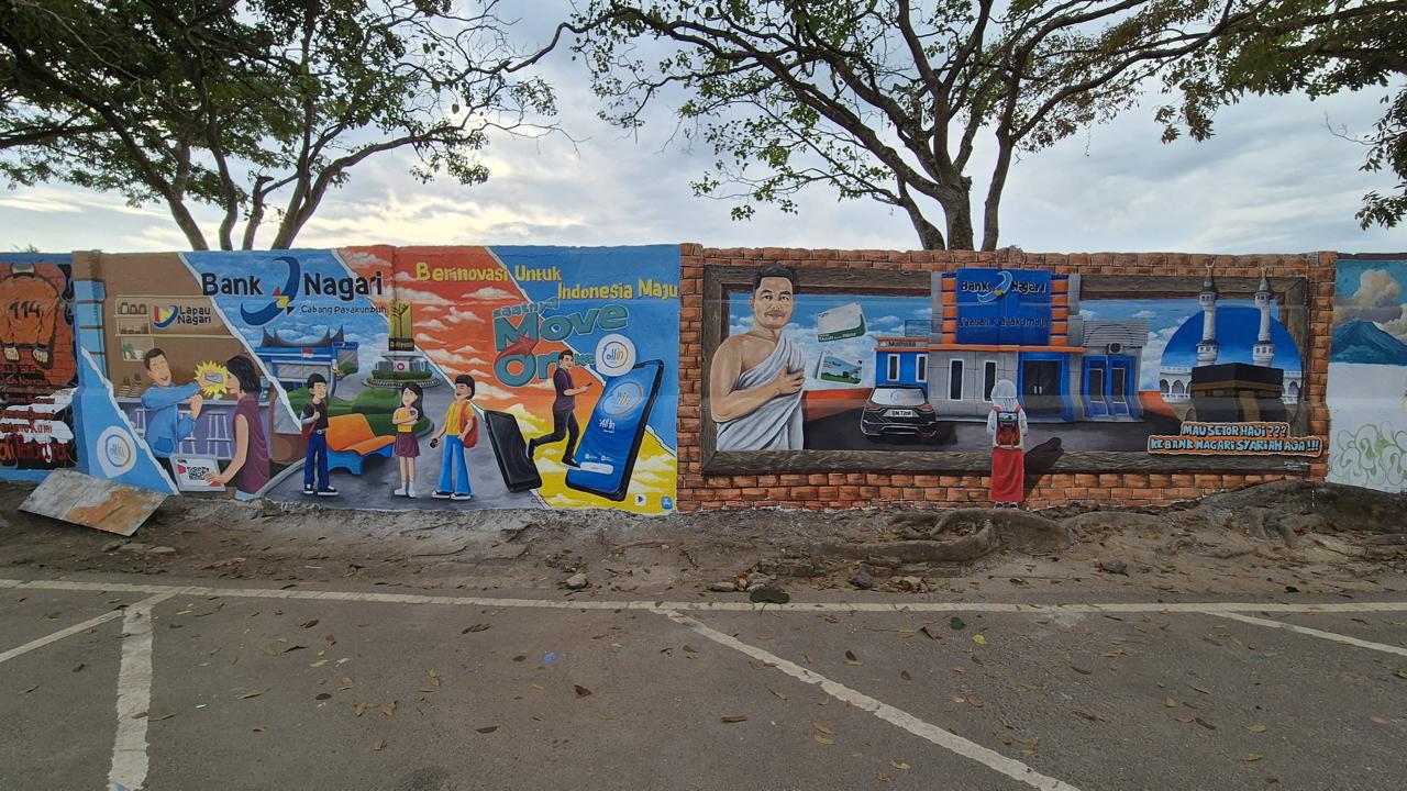 Satu mural lagi, di sampingnya bergambar Ollin, yakni layanan digital dari Bank Nagari.