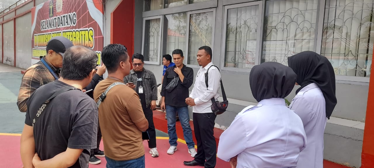 Teks Foto. Pegawai Humas Lapas Bukittinggi, Agung saat diwawancarai wartawan terkait pelecehan terhadap salah seorang tahanan wanita di Lapas Bukittinggi, Rabu (31/7).