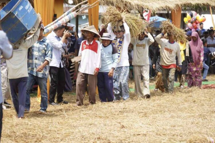 BATUSANGKAR, HARIANHALUAN.ID- Satu Nagari Satu Event (SNSE) Nagari Tanjung Kecamatan Sungayang Bapulang Padi, Bupati Tanah Datar Eka Putra, SE, MM, Mairiak jo Manongkang padi yang dikemas dalam pembukaan event anak nagari, Kamis (1/8/2024) di hamparan sawah Nagari Tanjung.