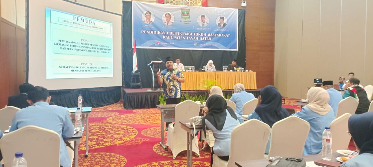 TANAH DATAR, HARIANHALUAN.ID – Anggota DPRD Sumbar Arkadius Dt Intan Bano bersama Kesbangpol Provinsi Sumbar menggelar kegiatan pelatihan dengan tema pendidikan politik bagi masyarakat Tanah Datar di salah satu hotel di ibukota Batusangkar, Rabu (7/8).