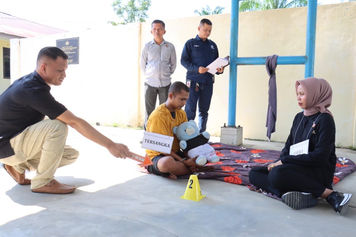 PASBAR, HARIANHALUAN ID— Kepolisian Resor Pasaman Barat atau Porles Pasbar bersama Polda Sumatera Barat (Sumbar) menggelar rekonstruksi kasus kekerasan yang menyebabkan meninggal dunia terhadap seorang bayi yang berinisial AK (13 bulan).