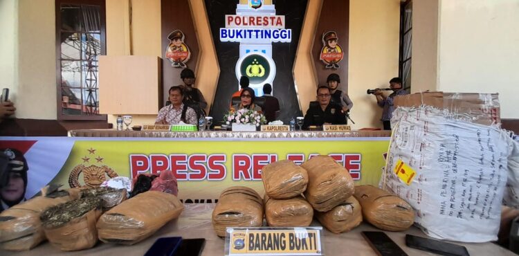 BUKITTINGGI, HARIANHALUAN.ID – Polresta Bukittinggi kembali menggagalkan pengiriman narkoba jenis ganja sebanyak 10 paket besar atau sekitar 10 kg melalui perusahaan expedisi di Bukittinggi.