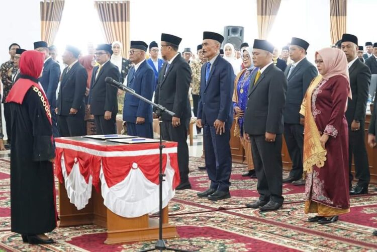BATUSANGKAR, HARIANHALUAN.ID- Sebanyak 35 orang anggota Dewan Perwakilan Daerah (DPRD) Kabupaten Tanah Datar terpilih masa jabatan 2024-2029 diambil sumpah dan janji jabatannya di Gedung Nasional Maharajo Dirajo Batusangkar Rabu (14/8/2024).