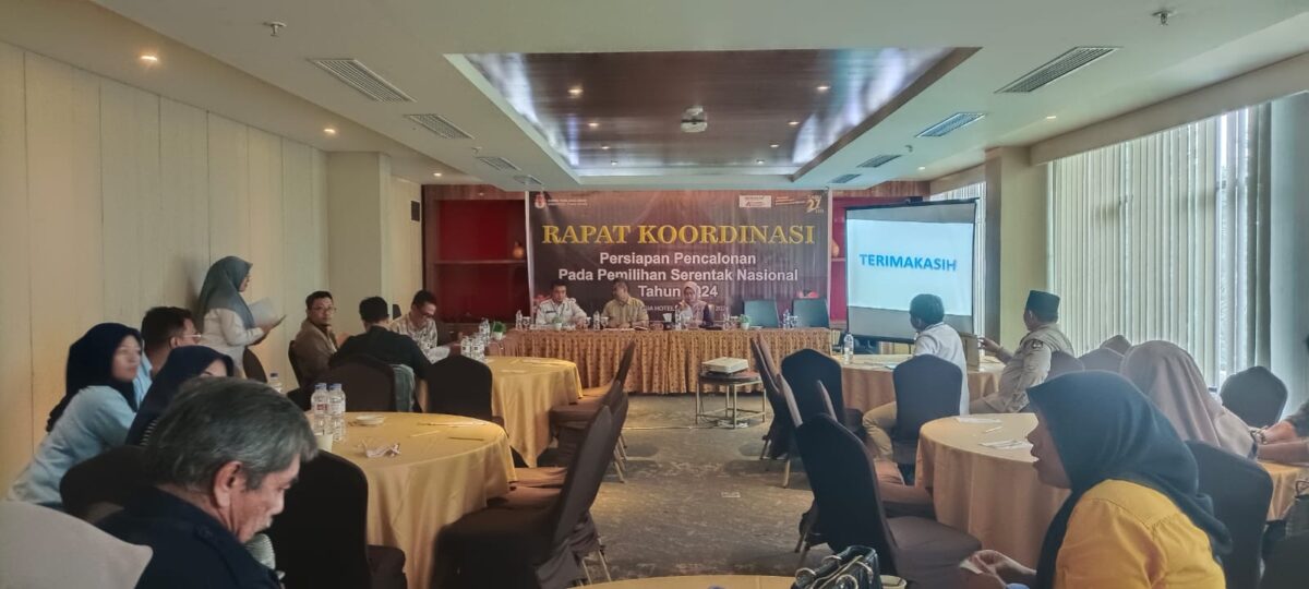 TANAHDATAR, HARIANHALUAN.ID- KPU Tanah Datar menggealar rapat koordinasi persiapan pencalonan pemilihan serentak nasional tahun 2024 bersama tokoh masyarakat di Ballroom Emersia Hotel, Kamis (15/8).