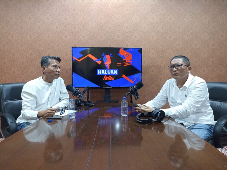 Teks Foto : Pimpinan Umum Haluan Zul Efendi bersama Wali Kota Padang incumbent, Hendri Septa, di Haluan Talk, Sabtu (17/8). FARDIANTO