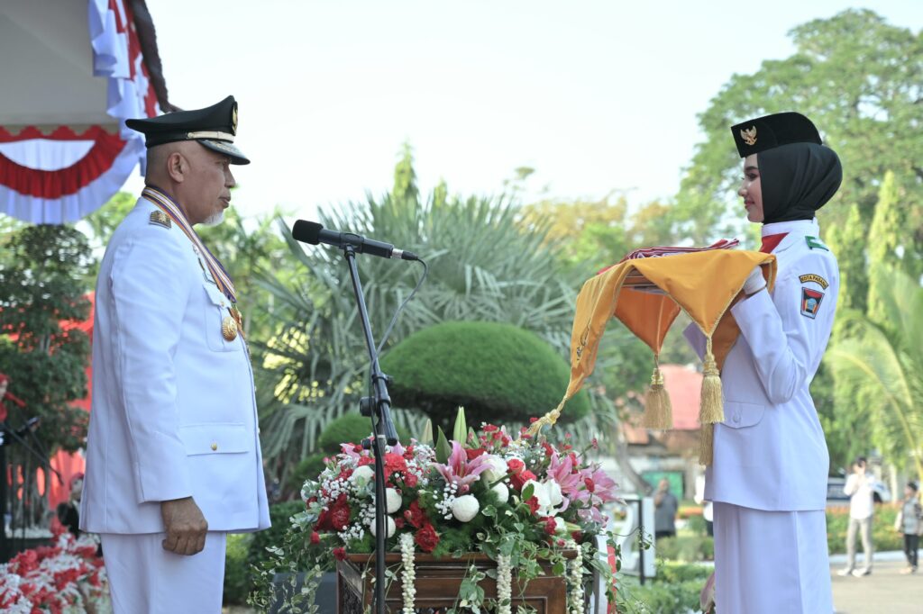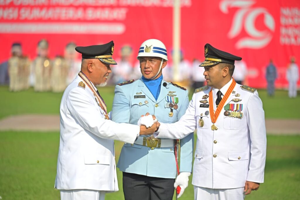 “Dari kegiatan yang dilaksanakan diharapkan dapat semakin memperkokoh persatuan, rasa cinta tanah air dan semangat bersama dalam memajukan Sumbar,” ujar Gubernur Mahyeldi usai menjadi inspektur upacara peringatan HUT RI ke 79 di Kompleks Gubernuran Sumbar Sabtu (17/8).