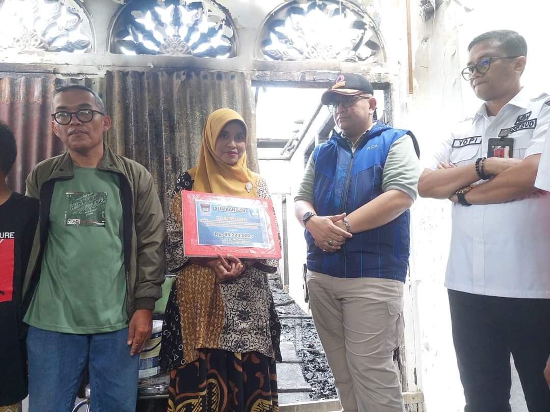 Usai meninjau, Andree Algamar menyerahkan secara simbolis bantuan dana sebesar Rp85.200.000,- kepada Ezi yang diharapkan dapat meringankan beban musibah yang dialami.