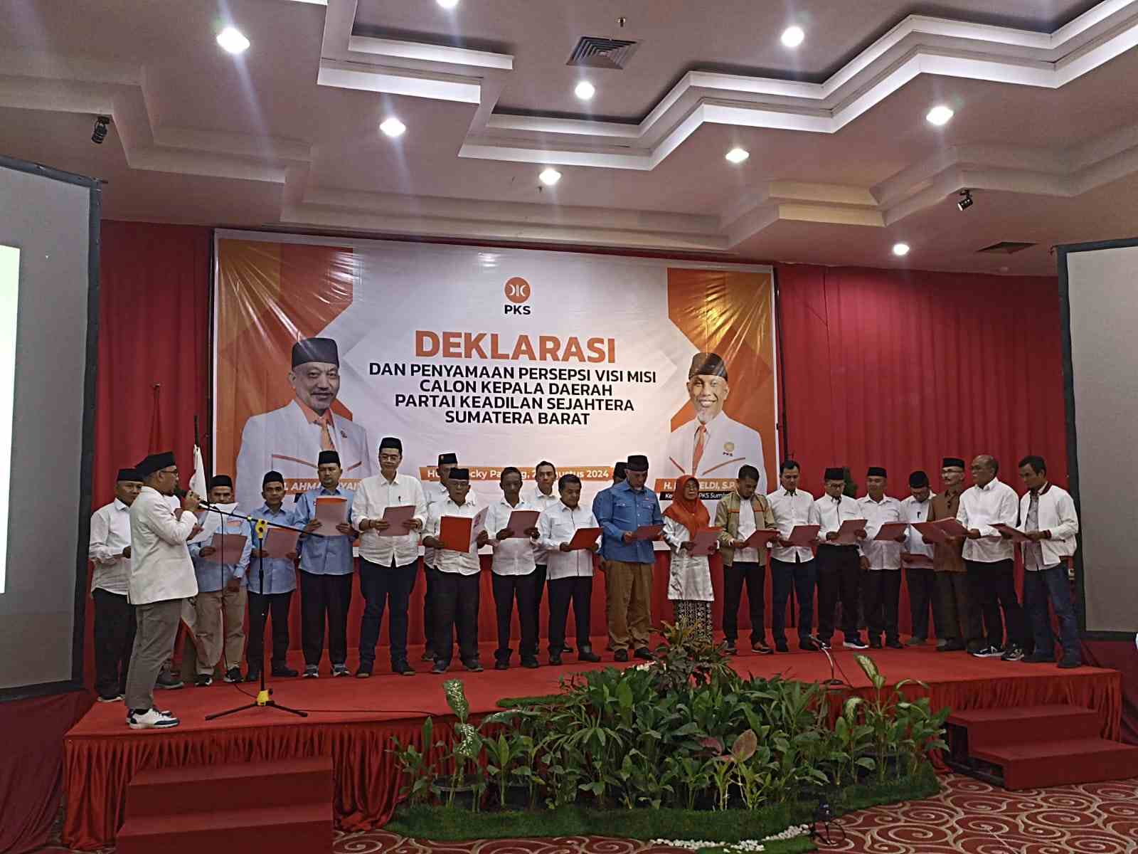 PADANG, HARIANHALUAN.ID – Dewan Pimpinan Wilayah (DPW) Partai Keadilan Sejahtera (PKS) Sumatera Barat (Sumbar) mendeklarasikan Pasangan Calon Gubernur dan Wakil Gubernur Sumbar serta seluruh pasangan calon di 18 Kabupaten dan Kota untuk Pemilihan Kepala Daerah (Pilkada) serentak 2024.