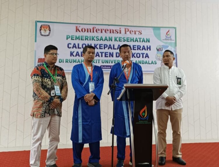 “Hari ini, kami menjalani pemeriksaan di RS Unand sebagai rumah sakit yang ditunjuk oleh KPU daerah. Tes ini penting, karena hampir 24 jam waktu kita terforsir untuk persiapan pilkada dan kampanye nantinya,” ucapnya.
