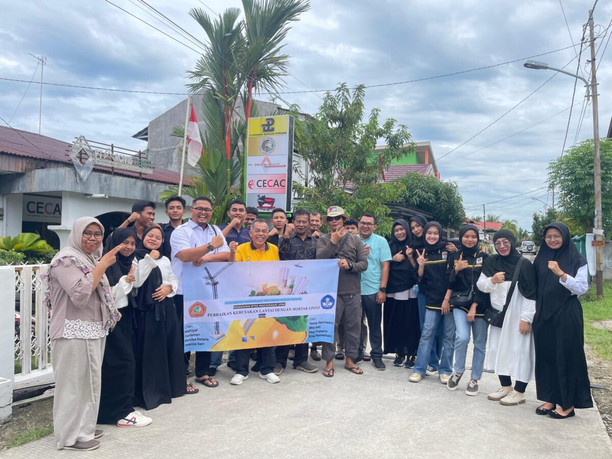 Ketua Pengabdian kepada Masyarakat, Ir. Mafriyal, M.Si. menjelaskan kepada Haluan, mortar epoxy adalah pasta pengikat berbahan dasar polimer yang berfungsi menambal dan mencegah kerusakan yang lebih parah. Sifat epoxy mortar yang padat dan kuat dapat menahan kerusakan akibat bahan kimia, dan menambah kekuatan lantai dalam menahan beban. Pasta yang dibanderol dengan harga relatif terjangkau ini dapat langsung diaplikasikan pada permukaan beton. Biaya pemasangannya pun tidak terlalu mahal, di samping variasi yang beragam, serta tahan beberapa tahun tanpa mengelupas maupun retak, jelasnya panjang lebar.