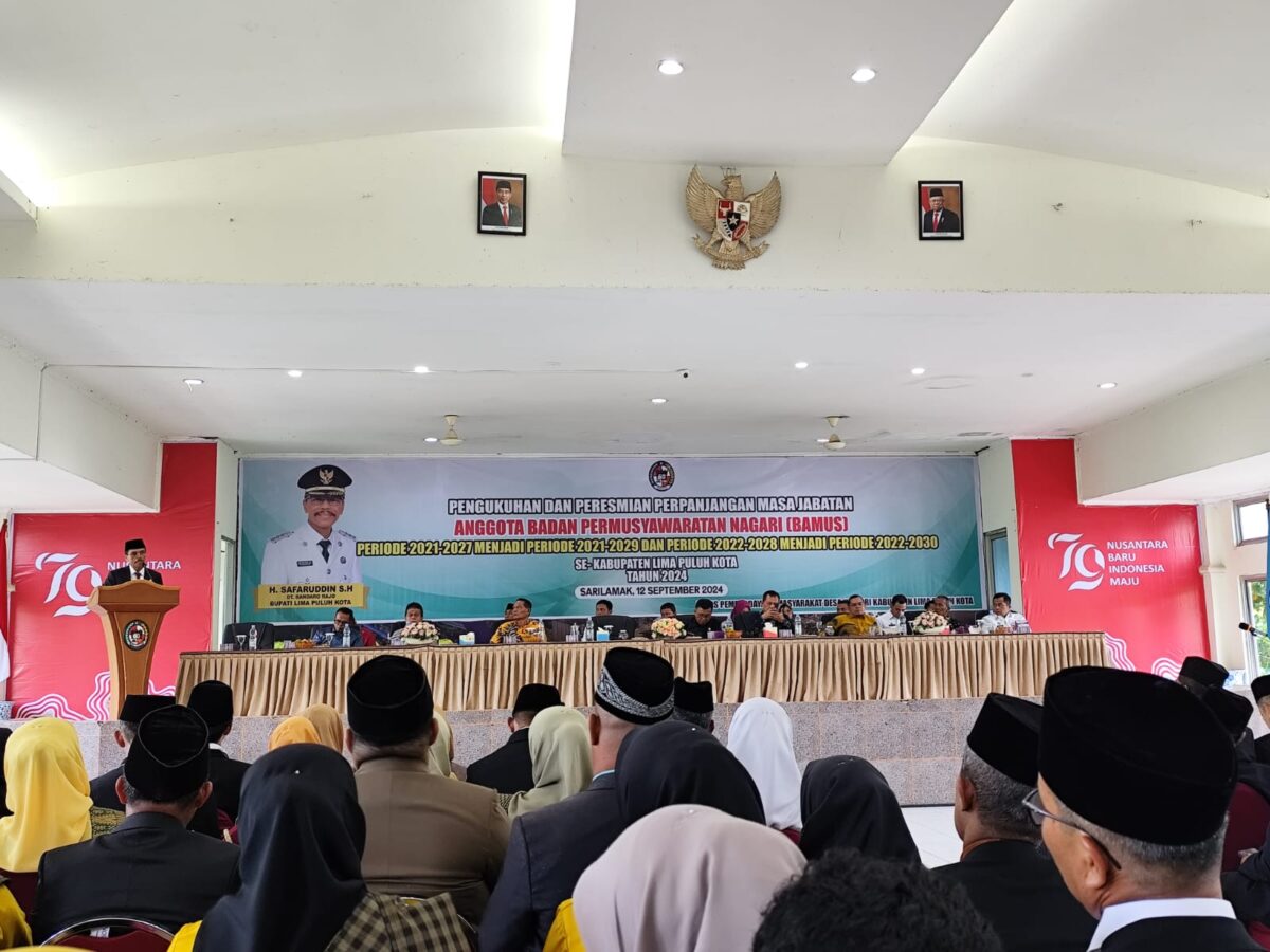 LIMA PULUH KOTA, HARIANHALUAN.ID — Ditetapkannya Undang-Undang No. 3 Tahun 2024 Tentang Perubahan Kedua atas Undang-Undang No. 6 Tahun 2014 Tentang Desa, beserta Surat Keputusan Bupati Lima Puluh tentang Peresmian Anggota Badan Permusyawaratan Nagari se-Kabupaten Lima Puluh Kota periode 2021–2027 dan 2022-2028, terkait Periodisasi masa Jabatan menjadikan Periode jabatan Bamus diperpanjang yakni 2021–2029 dan 2022–2030.