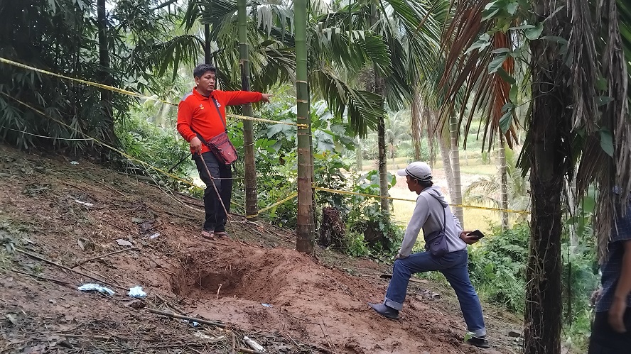 “Kami coba menyusuri daerah lereng tebing yang jarang dikunjungi warga. Di sana, kami menemui ada tanah timbunan yang mencurigakan,” katanya.