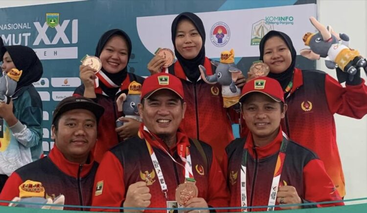 BANDA ACEH, HARIANHALUAN.ID- Atlet Petanque asal Kota Padang Panjang, Dini Restuti meraih medali perunggu pada kategori Triple Women di PON XXI-2024 Aceh-Sumatera Utara.