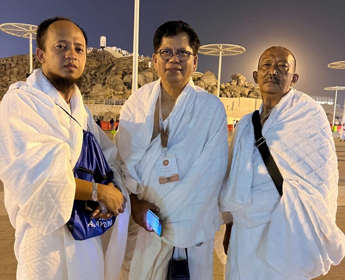 Keterangan foto : Direktur Utama Al Ghazi Tour dan Travel, PT Berkah Cahaya Safar, H.Rusdianto (kiri) bersama jemaah haji furoda 1445H/2024. IST