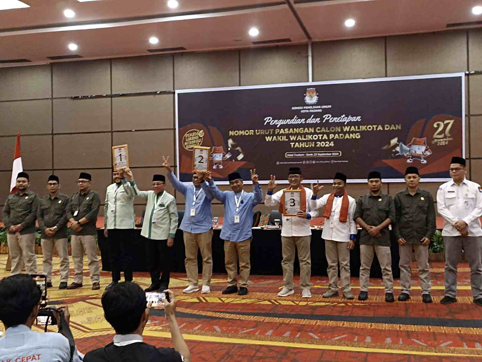 Pengundian nomor urut pasangan calon Wali Kota dan Wakil Wali Kota Padang 2024 itu dimulai sekitar pukul 15.00 WIB di salah satu hotel di Padang.