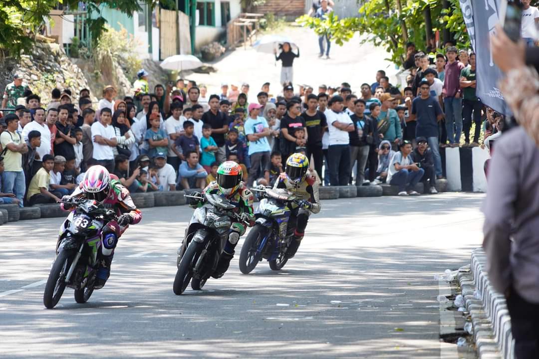 BATUSANGKAR, HARIAN HALUAN.ID- Ribuan masyarakat tumpah ruah menyaksikanBupati Tanah Datar Cup Race di Sirkuit Non Permanen (NP) Lapangan Cindua Mato, Minggu (22/9/2024).