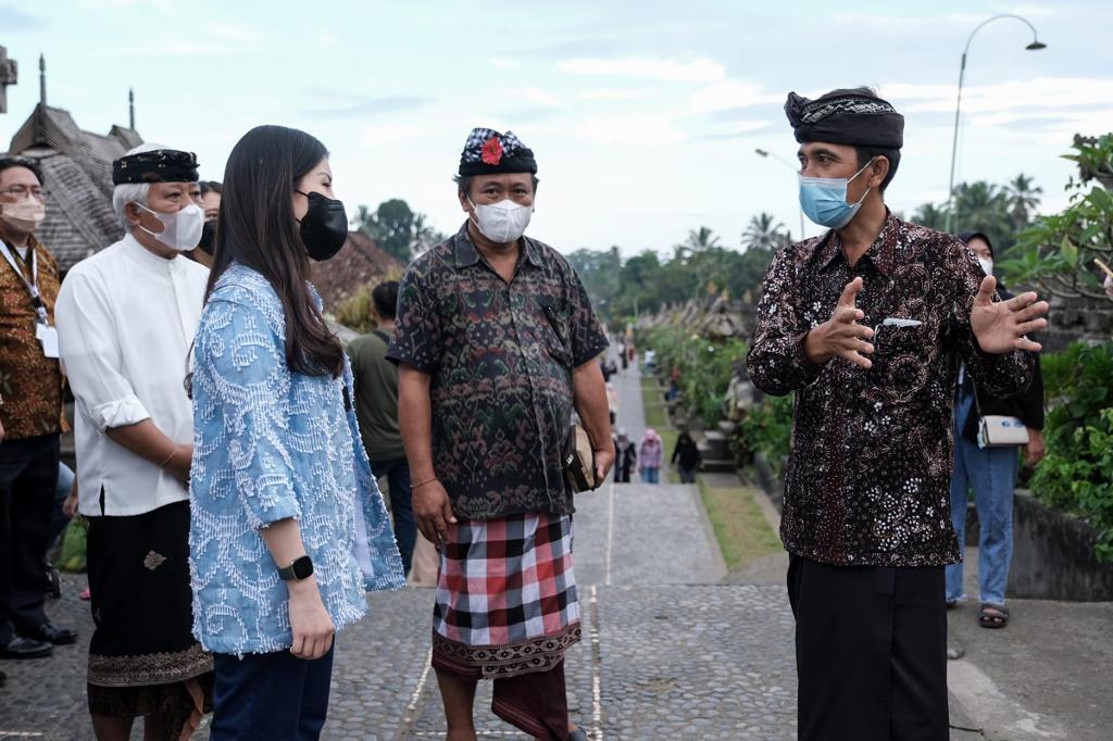 Dalam kunjungannya ke Desa Wisata Panglipuran, Wamenparekraf Angela diterima oleh Kelian Desa Adat Panglipuran I Wayan Budiarta, Bandesa Madya Majelis Desa Adat Kabupaten Bangli I Ketut Kayana, dan Patajuh Bandesa Agung MDA Bali dan Penggerak Desa Wisata I Made Wena.