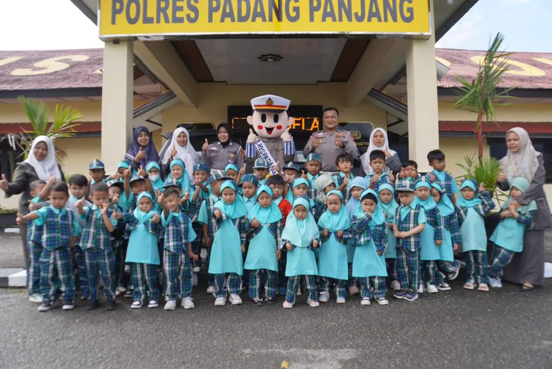 PADANG PANJANG, HARIANHALUAN.ID— Taman Kanak-kanak dan Kelompok Bermain (TK-KB) Smart Kids berikan wawasan berlalu lintas kepada anak didiknya dalam kunjungan langsung (field trip) ke Polres Padang Panjang, Senin (30/9/2024).
